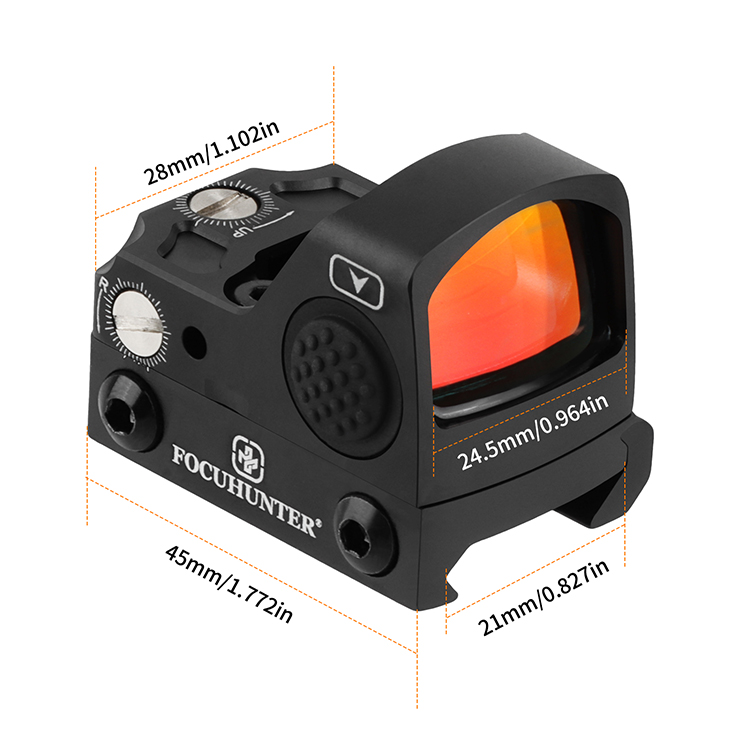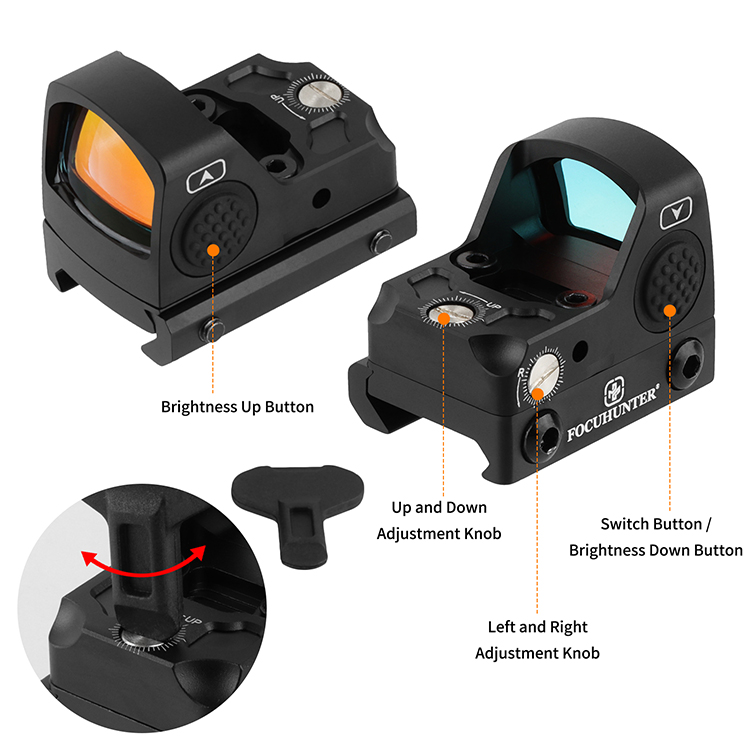 The Red dot sight is a sealed compact red dot sight intended for carbine, shotgun, and air rifle. Brightness is adjusted with a side-mounted button, featuring 12 daytime settings for quick target engagement in any condition.