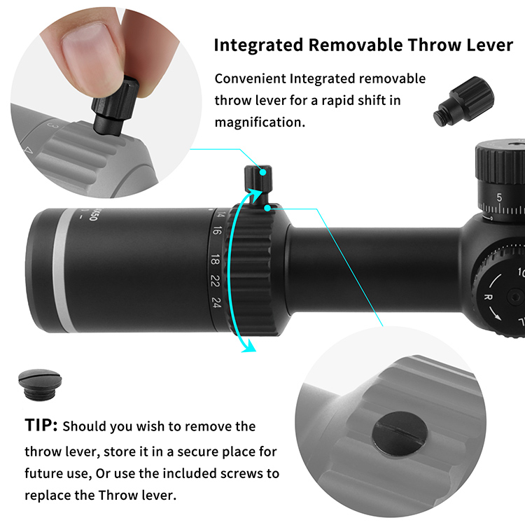 Convenient Integrated removable throw lever for a rapid shift in magnification.(2 throw levers are all removable,so there is a cap to fit into that).