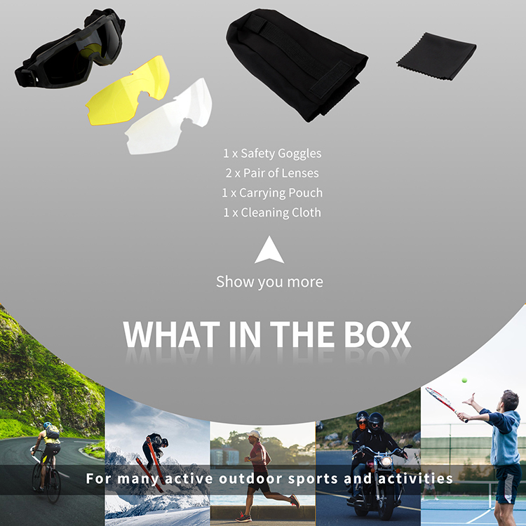 Three Color lenses: Clear, Yellow, and Smoke Gray.