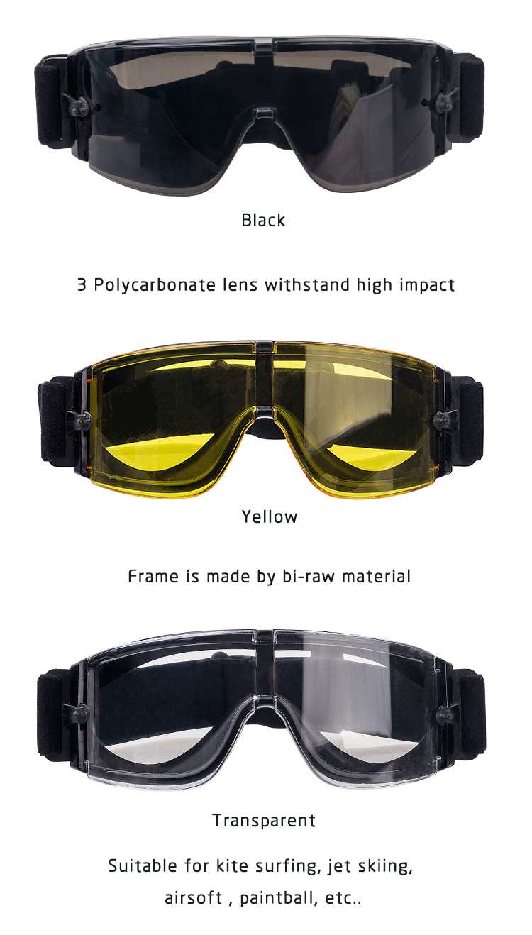 3 Polycarbonate lens withstand high impact ( Black , Transparent & Yellow)