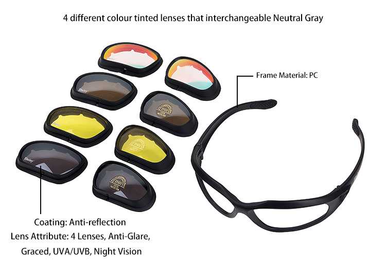 Daisy C5 Polarized UV400 Sunglasses Military Goggles 4 Pair Lenses for Motorcycling Hunting Riding Beach