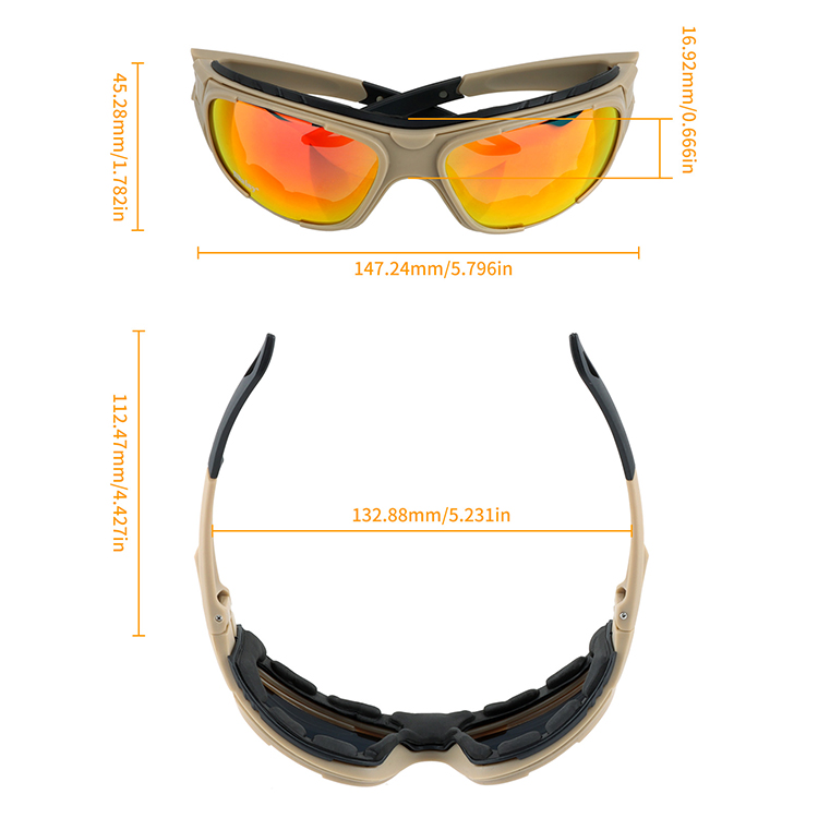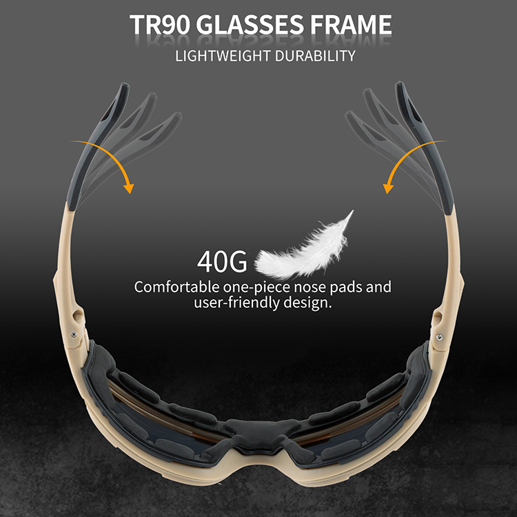 Best Design: Comfortable one-piece nose pads and user-friendly design. High-quality hinges, ensure opening and closing of the temples. Premium TR90 frame, not easily deformed. Well-designed legs has an outstanding anti-slip performance, making R90 Frame Tactical Sun Glasses natural and comfortable to wear.
