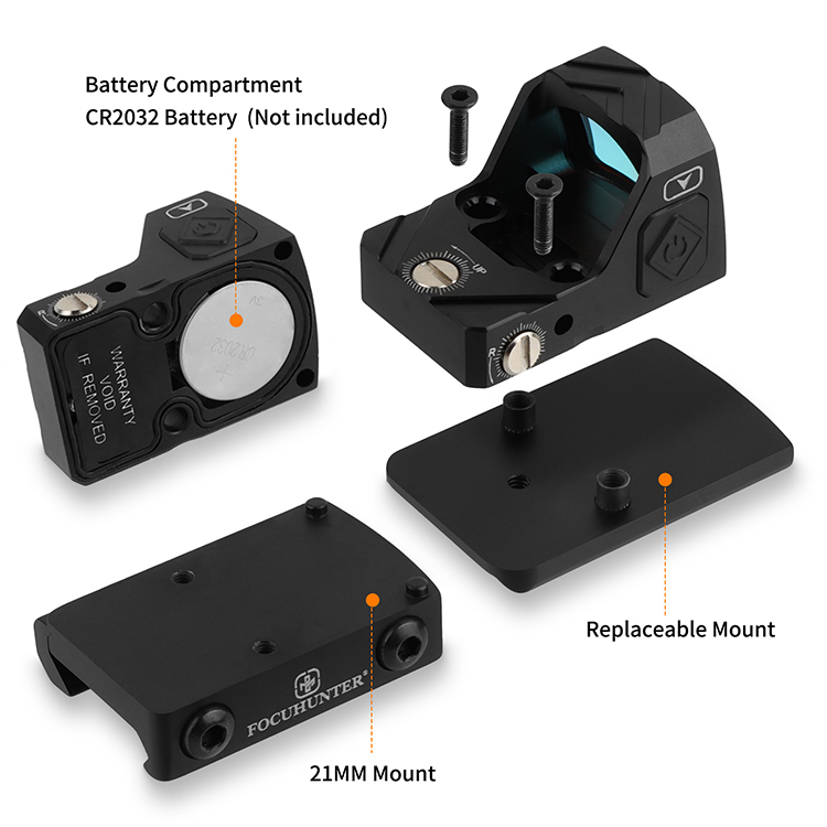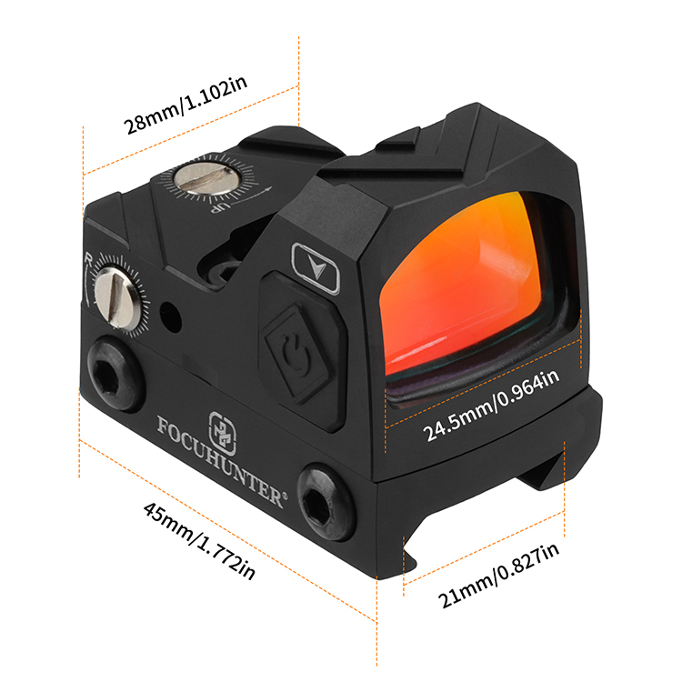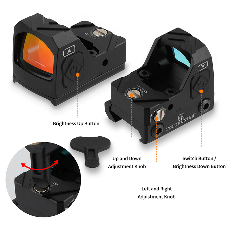 The Red dot sight is a sealed compact red dot sight intended for carbine, shotgun, and air rifle. Brightness is adjusted with a side-mounted button, featuring 12 daytime settings for quick target engagement in any condition.