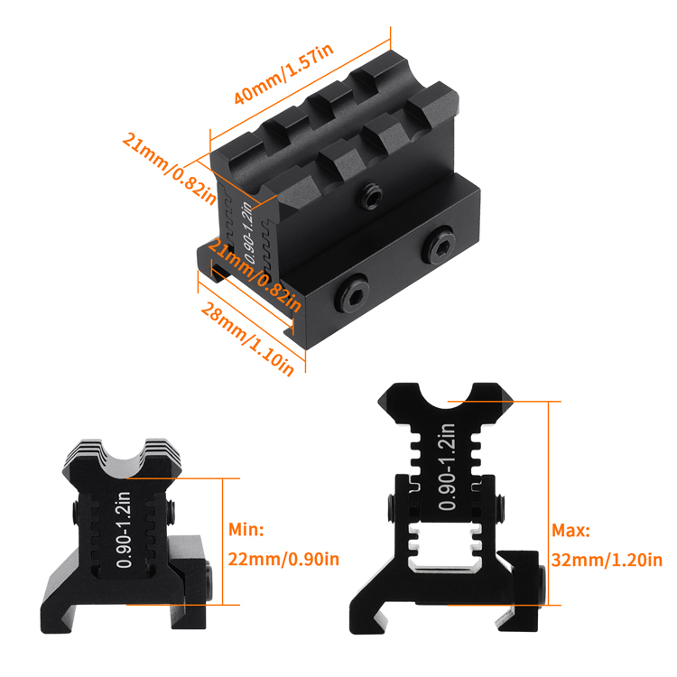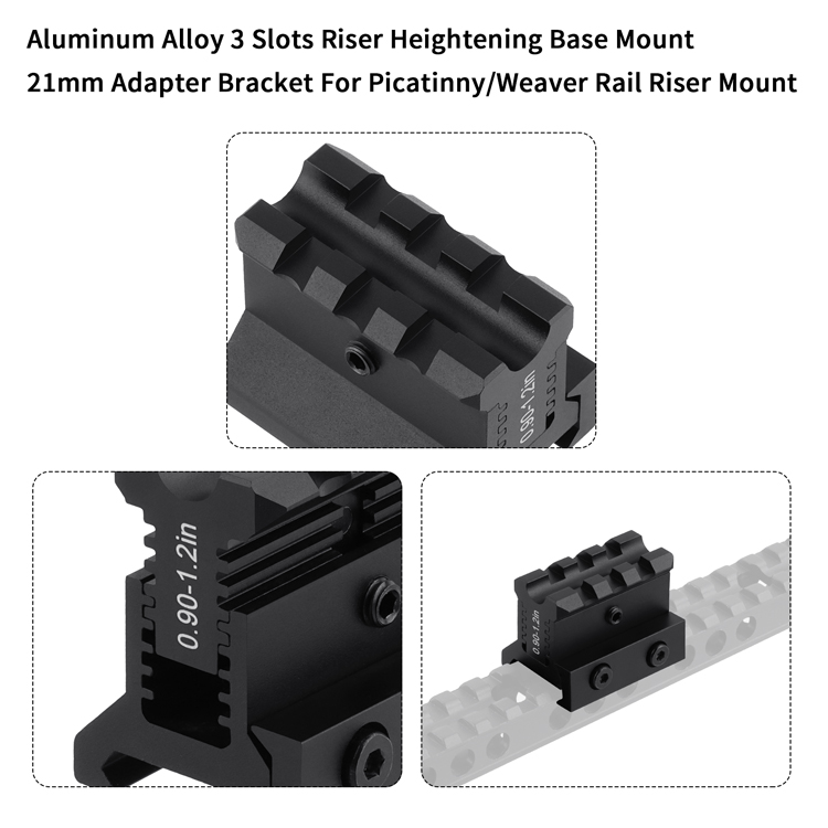 3 Slots Adjustable Height Picatinny Riser Mount for Red Dot Sight