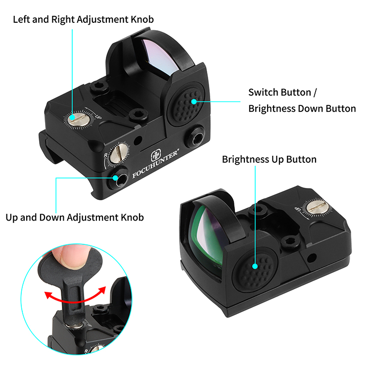 The Red dot sight is a sealed compact red dot sight intended for carbine, shotgun, and air rifle. Brightness is adjusted with a side-mounted button, featuring 12 daytime settings for quick target engagement in any condition.
