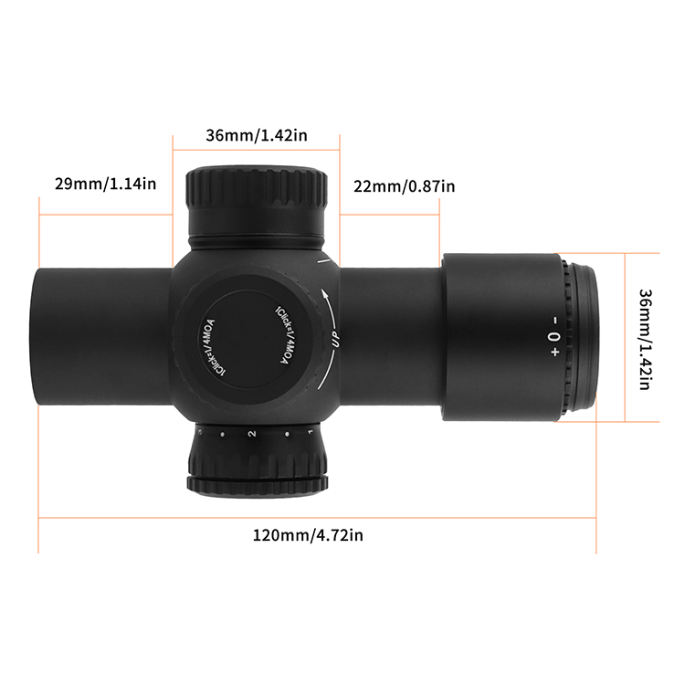 Comes with redLevel 6 brightness illuminated half mil-dot reticle that allows you to do range estimations, holdover & wind drift compensation.