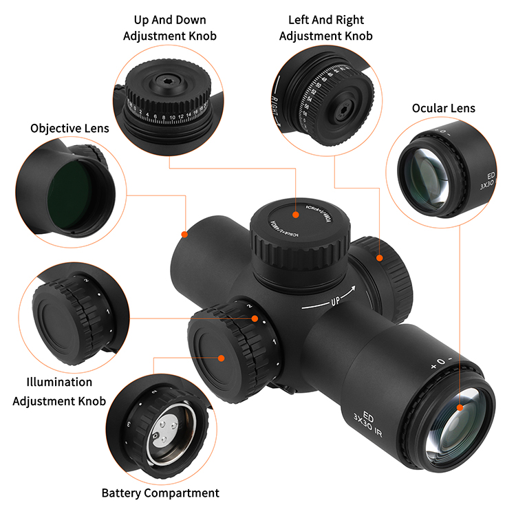 3x30 Prism Rifle Scope designed with versatility in mind for both short-distance quick acquisition & medium to long-distance shooting.