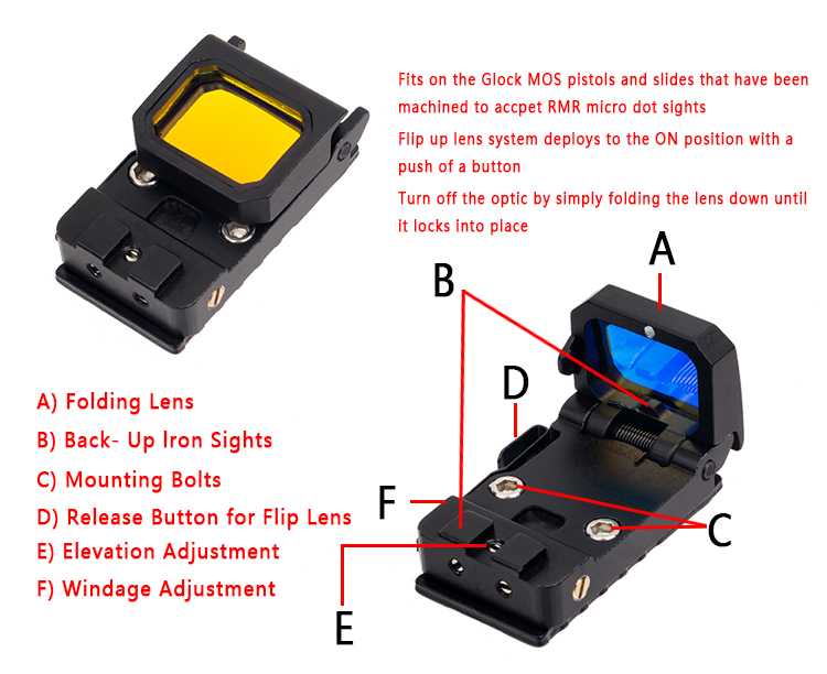 The FlipDot folding Red dot reflex lens (22mm X 16mm) folds down flat when not in use.