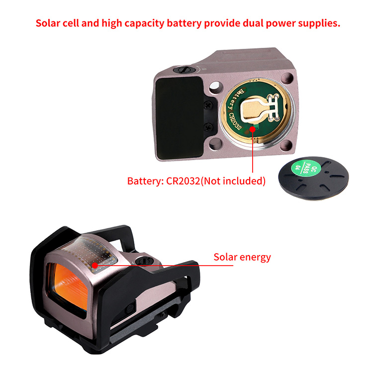 Micro Red Dot Reflex Sight Solar Panel for Pistol.