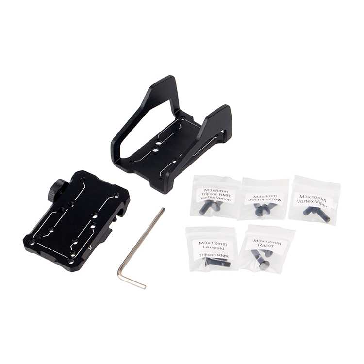 Multi-purpose mounting options for most picatinny rails or slide-mounted optics on handguns.
