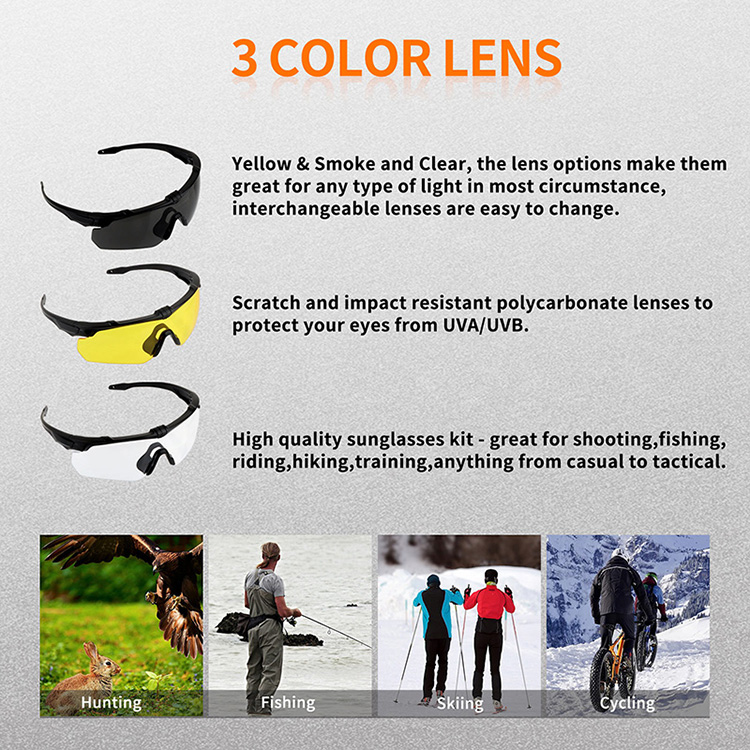 High quality sunglasses kit - great for shooting,fishing,riding,hiking,training,anything from casual to tactical